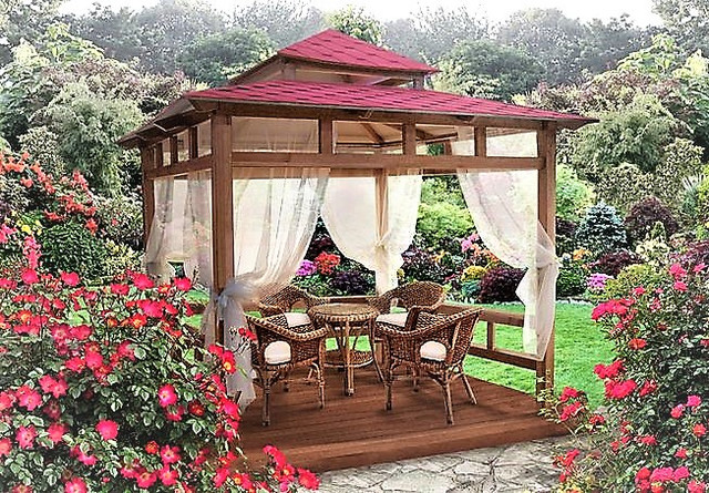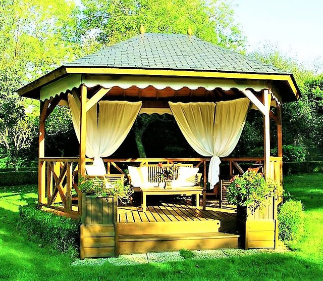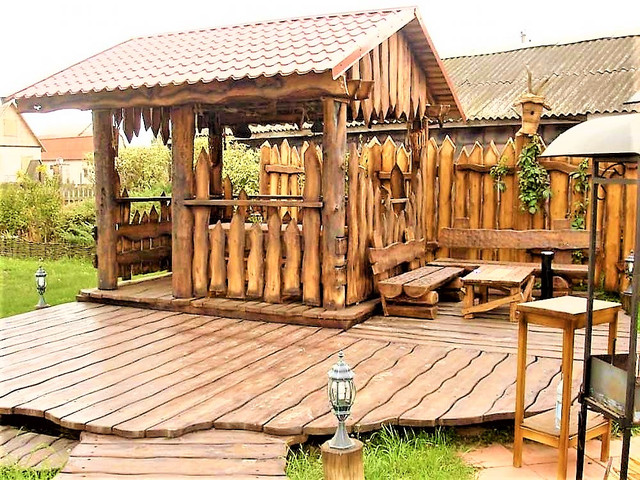 Крім цього, дерево - це самий популярний, благородне і дешеву сировину для виготовлення альтанок для заміських ділянок.