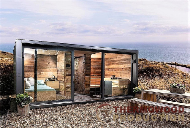 Модульна сауна із дерева набагато комфортніша кам'яної, крім цього, індивідуальне будівництво дерев'яної сауни відкриває більше можливостей для дизайну. З технологічної точки зору дерево – це прекрасний термоізолятор, він поглинає тепло від пічки і м'ягко віддає його.