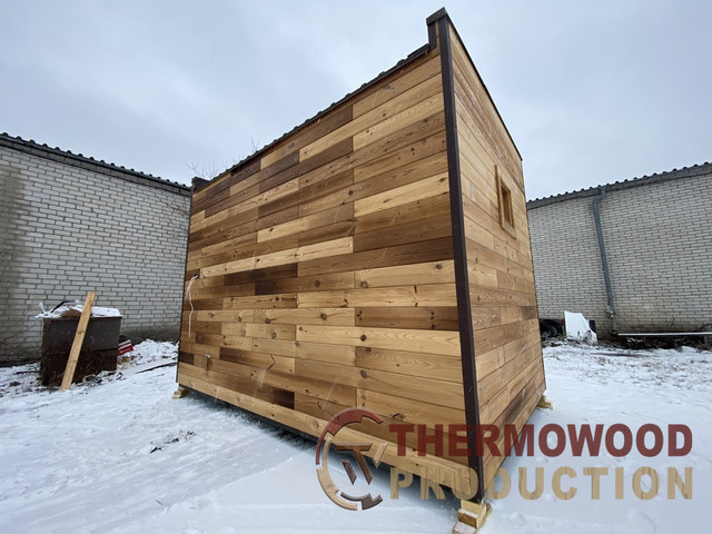 🏡 Брутальність і Комфорт: Збережіть брутальний характер природи, вибираючи міні-баню від Thermowood Production. Фасад і внутрішня обшивка з термодерева створюють неповторний стиль вашого власного куточка спокою.