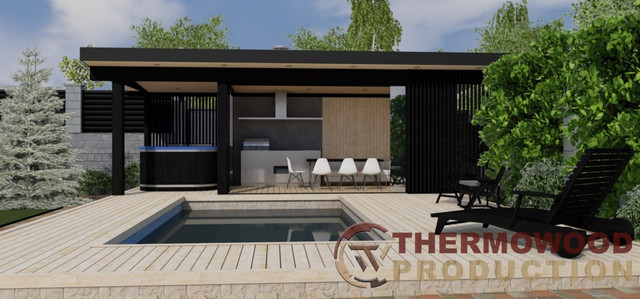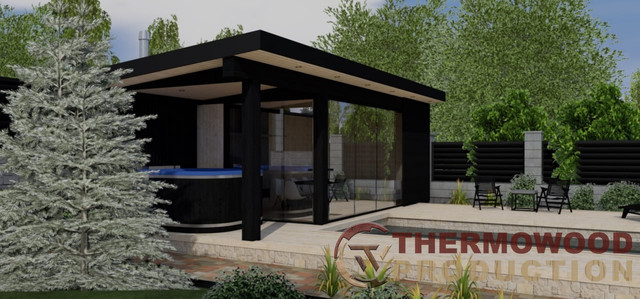 Thermowood Production – ваш надійний партнер у проектуванні та будівництві альтанок з басейнами, купелями та панорамними вікнами. Ми створюємо унікальні місця для відпочинку, які поєднують у собі стиль, комфорт та сучасні технології.
