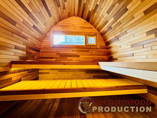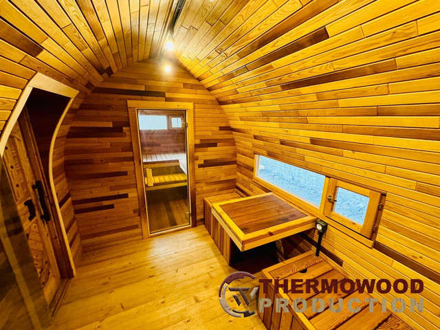 - Висока термостійкість і довговічність: Завдяки використанню термодерева, бані мають високу стійкість до впливу вологи та температур, що робить їх ідеальними для тривалого використання в будь-яких кліматичних умовах.