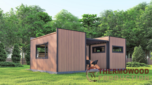- Висока якість продукції Наша продукція виготовляється з термодерева, що гарантує її довговічність, стійкість до погодних умов та високі теплоізоляційні властивості. Мобільні бані від Thermowood Production відповідають найсуворішим стандартам якості, що робить їх затребуваними на міжнародних ринках.