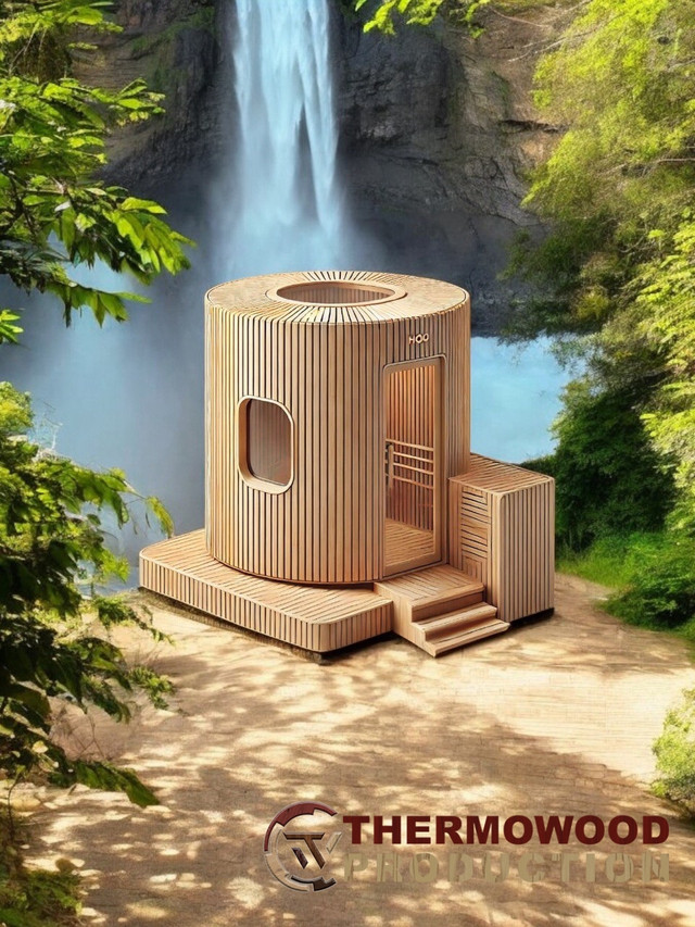 Thermowood Production – це лідер у створенні унікальних, сучасних і довговічних рішень для комфортного відпочинку. Наша команда радо представляє нову ідею – концепт вертикальної круглої сауни, що поєднує мінімалізм, функціональність і естетику.