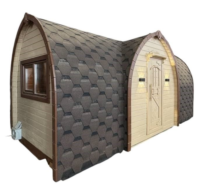 "Вікінг" — це класична бочка-сауна у формі циліндра, яка поєднує справжню банну атмосферу з компактністю та естетикою.