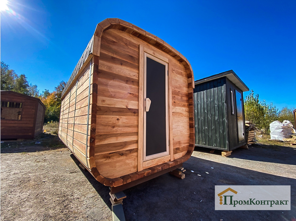 Крім цього, сауна бочка може комплектуватися електропічкою, це неабияк вплине на зниження вартості бані бочки.